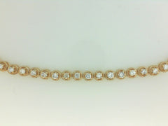 THIS 14 KARAT YELLOW GOLD TENNIS BRACELET FEATURES DIAMONDS SURROUNDED BY A MILLGRAIN TEXTURED EDGE.